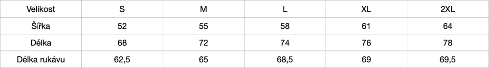 VELIKOSTNÍ TABULKA: